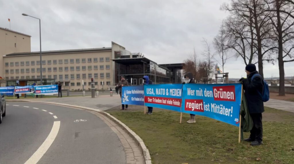 Am 02.02.2023 erfolgte unsere Banneraktion vor dem Sächsischen Landtag, wo ab 10 Uhr die von der #AfD initiierte Debatte „Dem Frieden verpflichtet! Diplomatie statt Waffen!“ stattfindet. (kann live auf der Internetseite des Landtages mitverfolgt werden) Vergessen wir niemals, wer die wirklichen Feinde des Friedens sind! #EsistnichtunserKrieg #DiplomatiestattWaffen Folgt uns auf Telegram: https://t.me/afddresden [videopack id=“8824″]https://afd-dd.de/wp-content/uploads/2023/02/video_2023-02-02_15-30-49.mp4[/videopack]