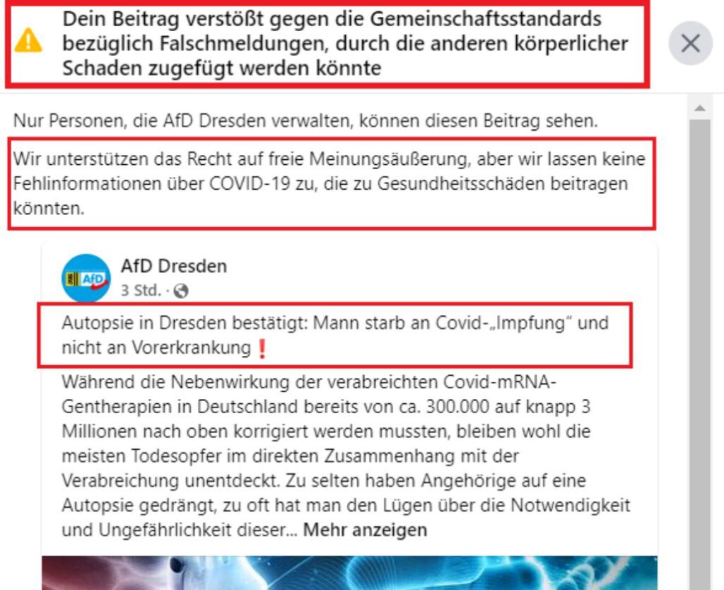 In Dresden stirbt ein Patient nachgewiesenermaßen an der Covid-mRNA Gentherapie. Wir veröffentlichten dazu unseren TG-Beitrag auch auf Facebook, der kurze Zeit später einkassiert wurde mit der Begründung, „wir lassen keine Fehlinformationen über Covid-19 zu, die zu Gesundheitsschäden beitragen könnten“. Bei solchen Zeilen weiß man nicht so genau, ob das jetzt einfach nur Sarkasmus war oder […]