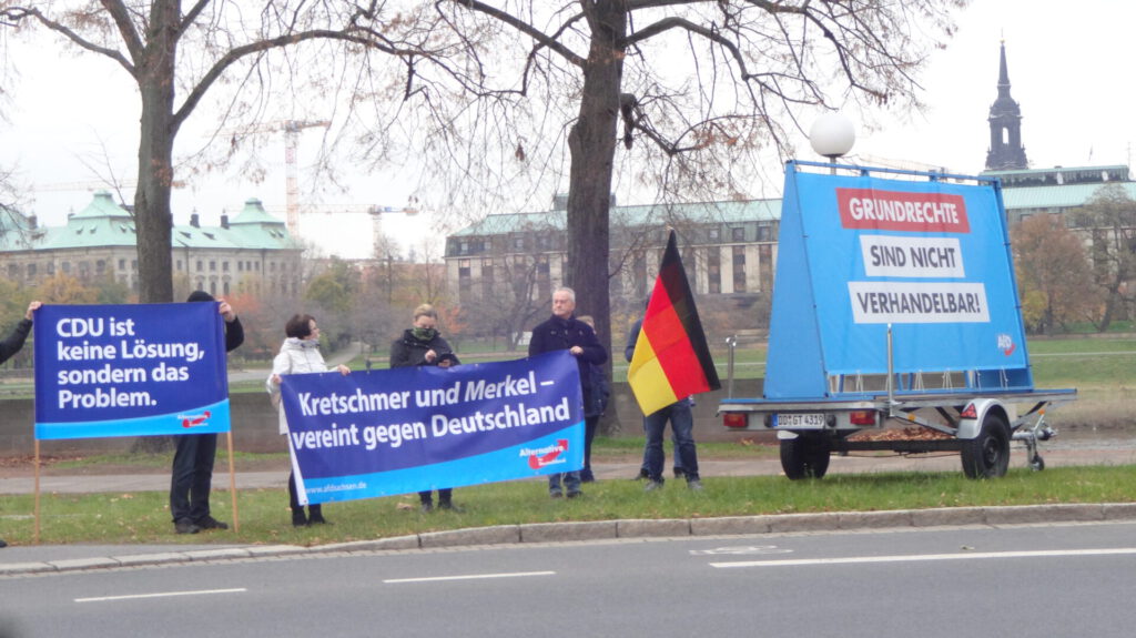 Infektionsschutzgesetz: Der AfD-Kreisverband Dresden vor dem Sächsischen Landtag anlässlich der Sondersitzung, welche durch die AfD-Fraktion beantragt worden ist. Fotos: AfD KV Dresden
