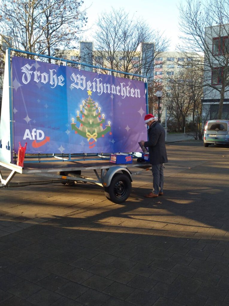 Der Dresdner Kreisverband war am 10.10.2020 mit zwei Infoständen an den Eingängen des Prohliscenters präsent. Während auf dem Parkdeck eine linksgrüne Veranstaltung durchgeführt wurde kamen viele Besucher zu uns um über die Zustände im Wohngebiet Prohlis zu diskutieren. Einigkeit bestand darin das AfD die einzige Partei ist welche sich für Ordnung und Sicherheit einsetzt. Die […]
