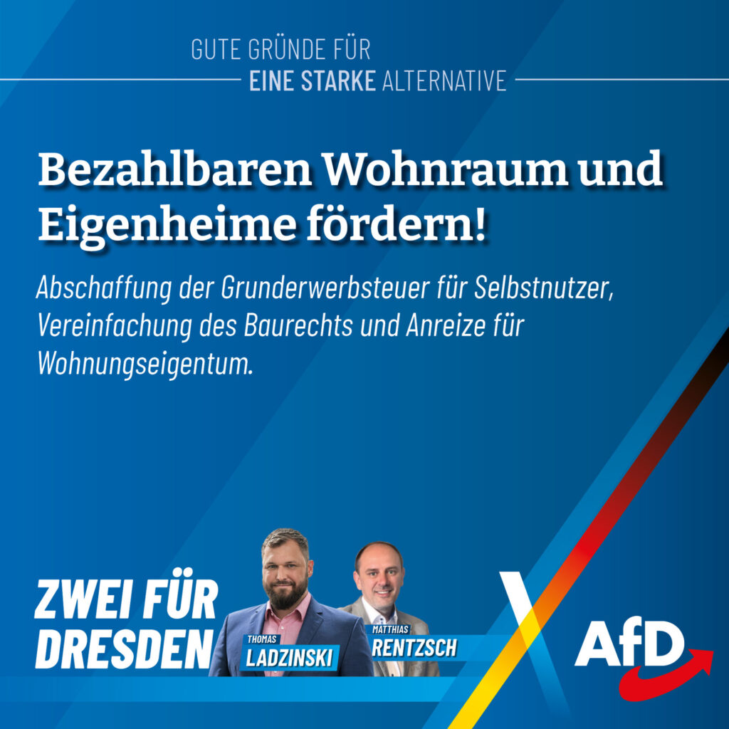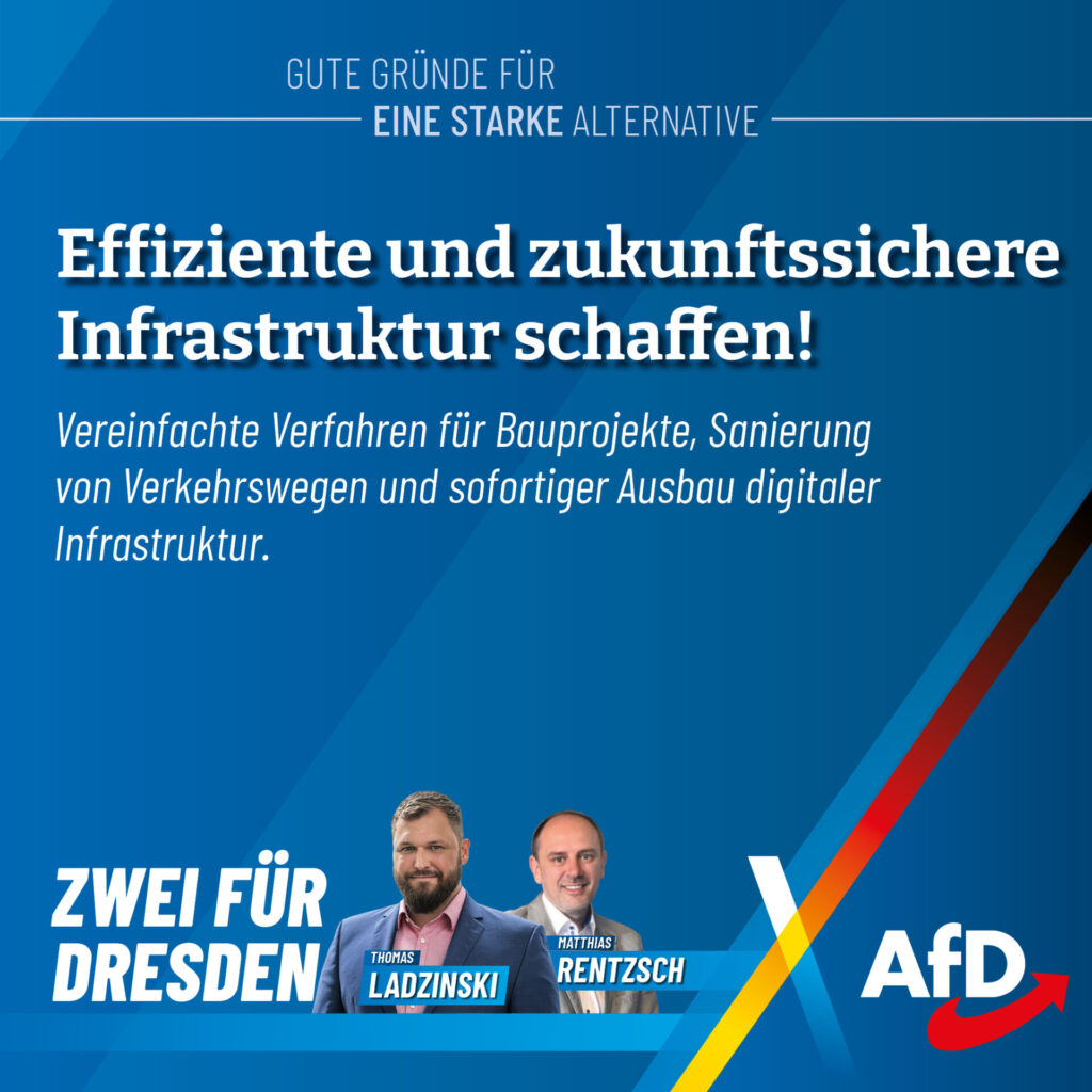 Thomas Ladzinski tritt als Direktkandidat für uns im Wahlkreis Dresden I an. Als erfahrener Kommunalpolitiker kennt er die Themen, die unsere Städte bewegen: Bau, Verkehr, Wohnen und Energiepolitik. Besonders wichtig ist ihm die Stärkung der kommunalen Selbstverwaltung. Kommunen müssen besser finanziell ausgestattet werden, und das Förderunwesen muss endlich zurückgefahren werden. Denn die kommunalen Vertreter wissen […]