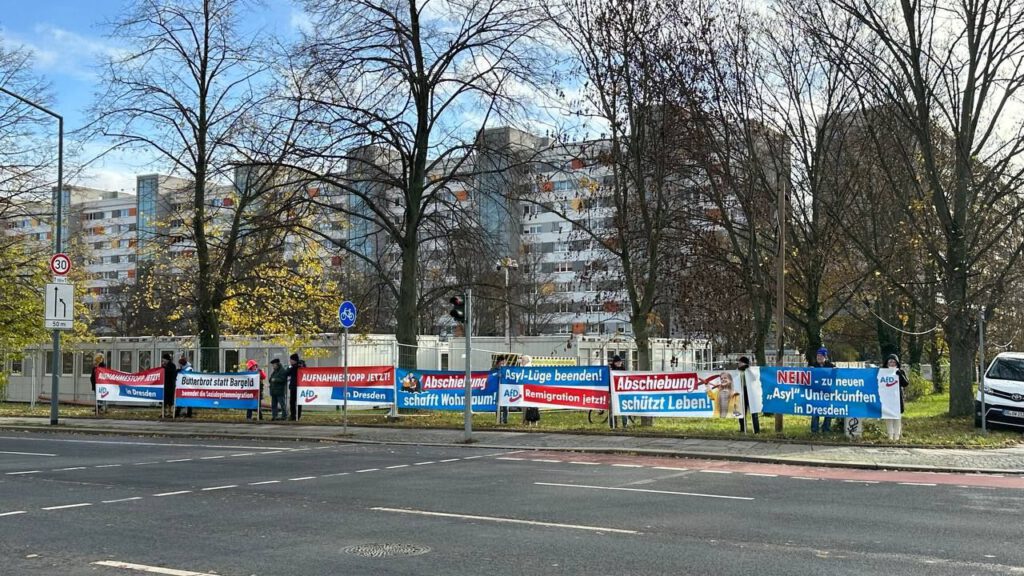 Unsere Banneraktion am 25.11.2023 vor der Containerunterkunft für Sozialsystem-Migranten am Sachsenplatz in Dresden Die aktuell in Dresden im Aufbau befindlichen Containerdörfer stehen als Synonym einer seit Jahren extrem feindlichen Politik gegen das eigene Volk. Das Altparteien-Kartell entsorgt gezielt den Wohlstand und die Sicherheit der eigenen Bürger. Während die Menschen durch eine immense Steuer- und Abgabenlast […]