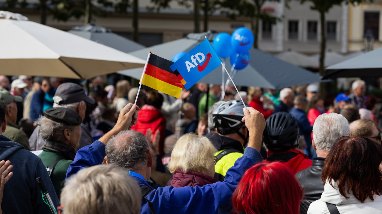 hunderte Deutschland- und AfD-Fahnen im Wind,