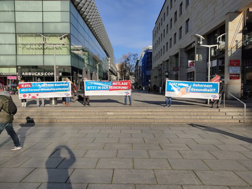 In vielen Städten gingen heute unsere Mitglieder auf die Straße. Meißen, Chemnitz, Leipzig, Grimma, Borna, Freiberg, Waldheim, Dresden u.v.m. Nicht für alle Fotos war Platz in dieser Collage. VIDEO AfD-Mitglieder am heutigen Tag bei einer Plakataktion auf Höhe der Uniklinik Dresden, um gegen die geplante Impfpflicht – welche nach letzten Informationen zuerst die Mitarbeiter in […]