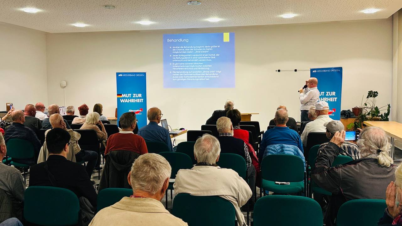 Der Saal war gut gefüllt – und der fachkundige Referent erklärte eindrucksvoll, wie wichtig frühes Erkennen und schnelles Handeln im Ernstfall sind.